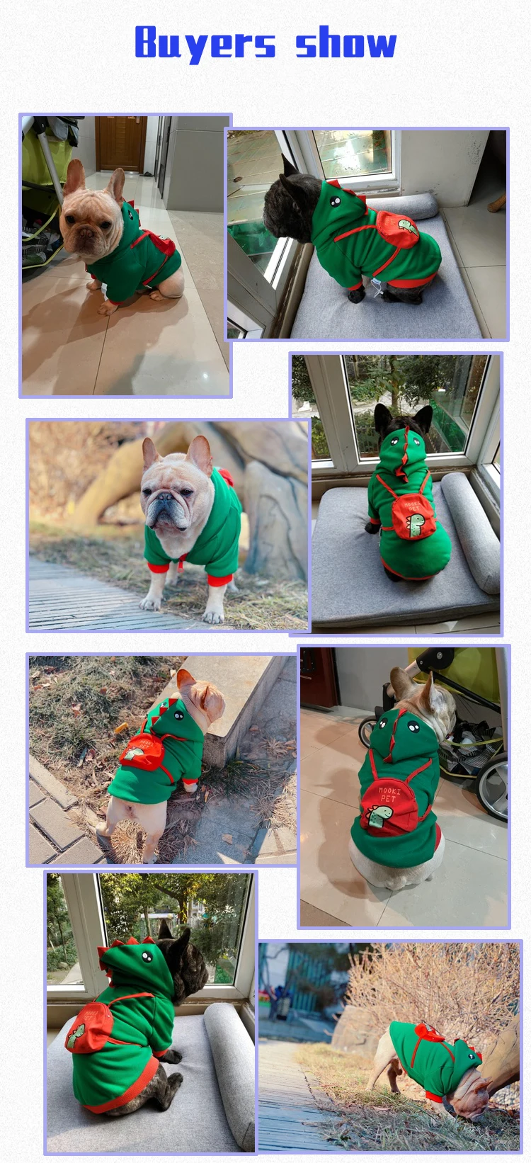 With the inspiration of the dinosaur outfit, the design of a backpack is added to the back of the clothes, which is practical and trendy. The cute eye embroidery on the front of the hat also makes the upper body of the cute pet more eye-catching. Contrasting color threaded cuff design, the upper body highlights the sense of hierarchy.